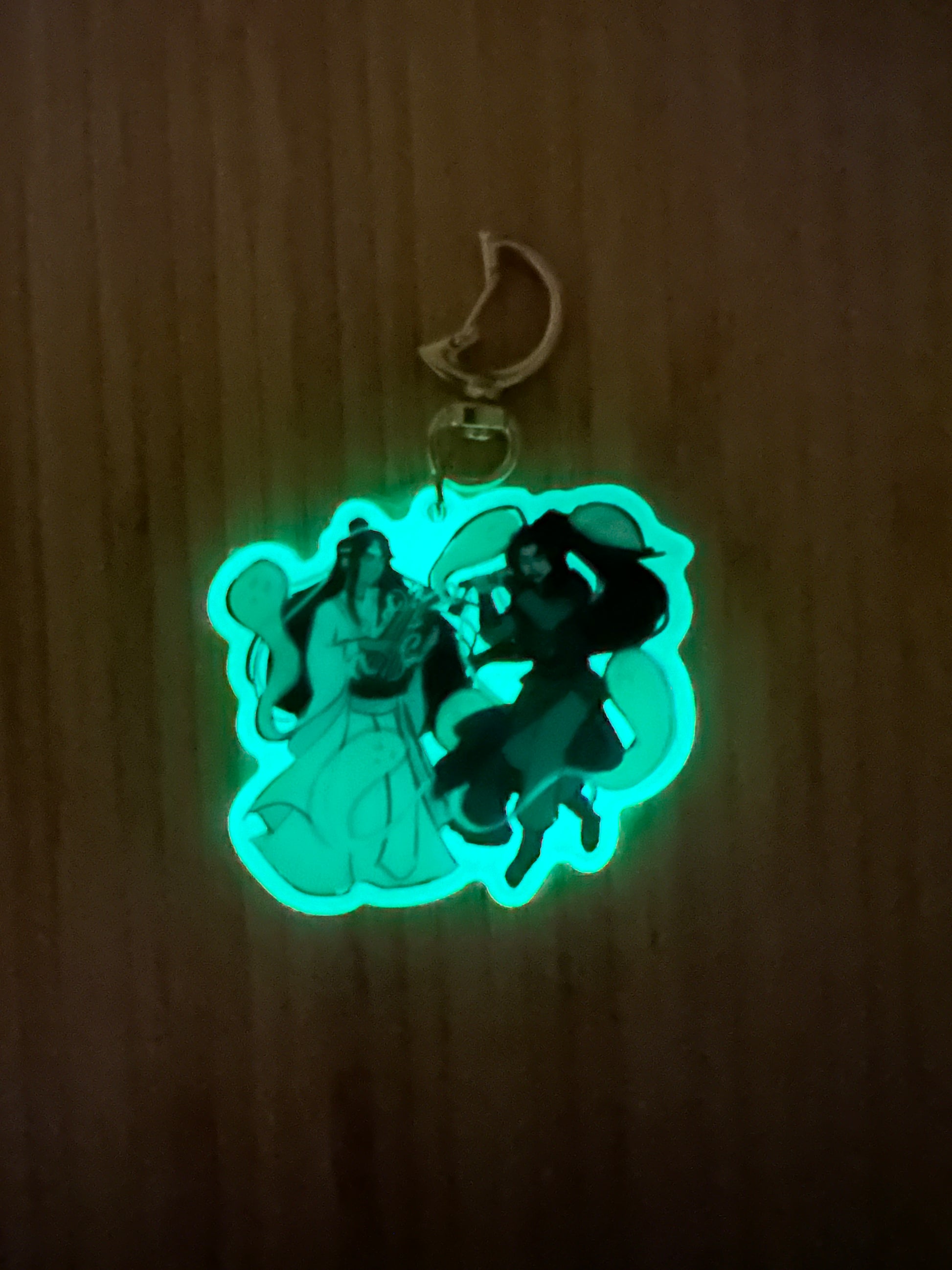 2” x 2.5” Double sided Glow in the Dark Acrylic charm with crescent moon shaped clip